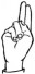 На ћирилици написано МАРИНА ШЋЕЛОВИЋ састоји се из 14 слова [?]. Исписано ћириличном једноручном азбуком за глувонеме: